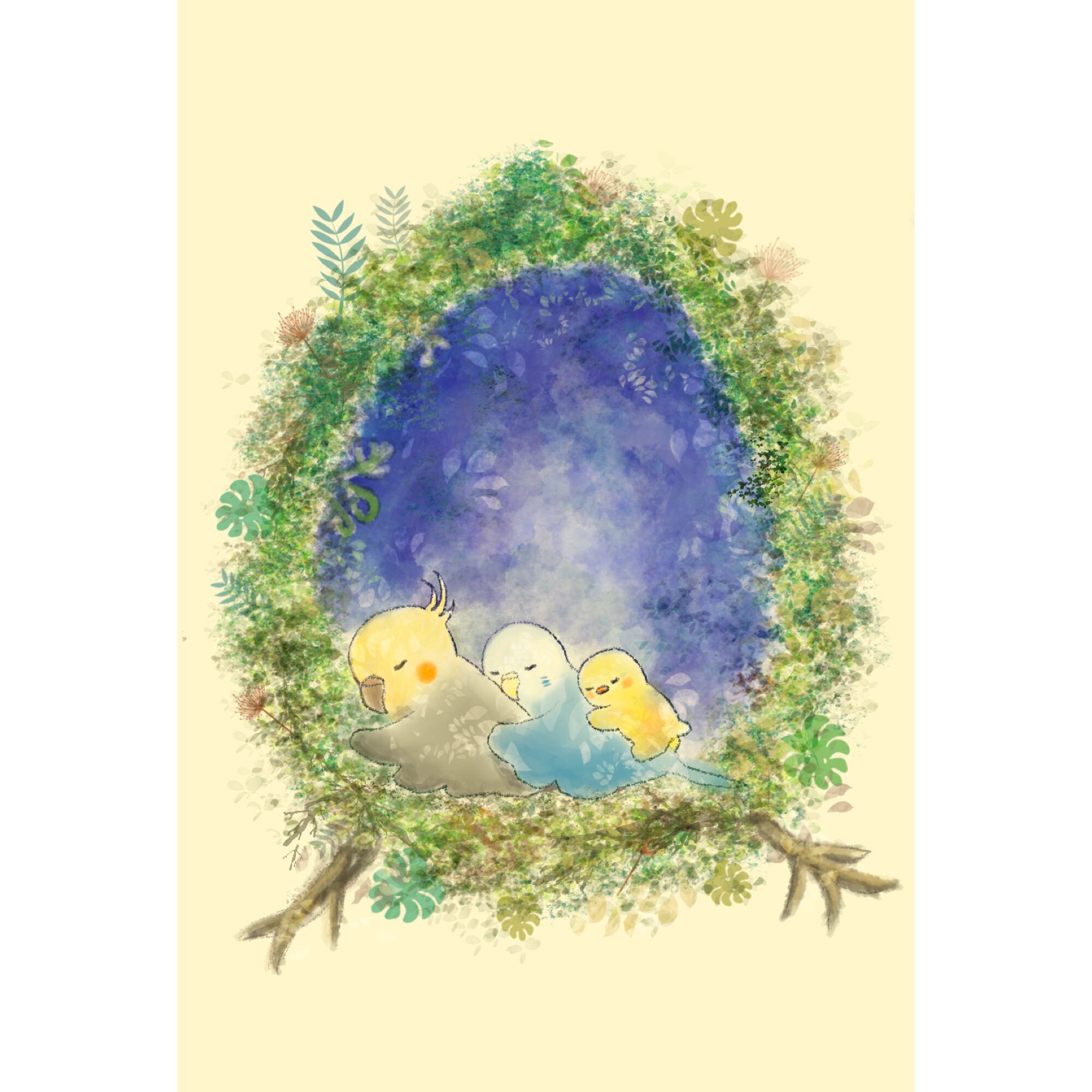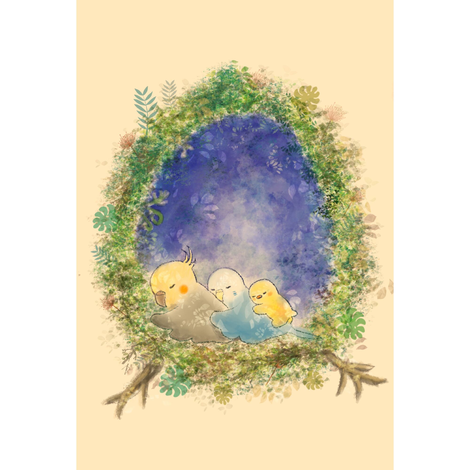 インコちゃんとひよこのお昼寝【データ販売】